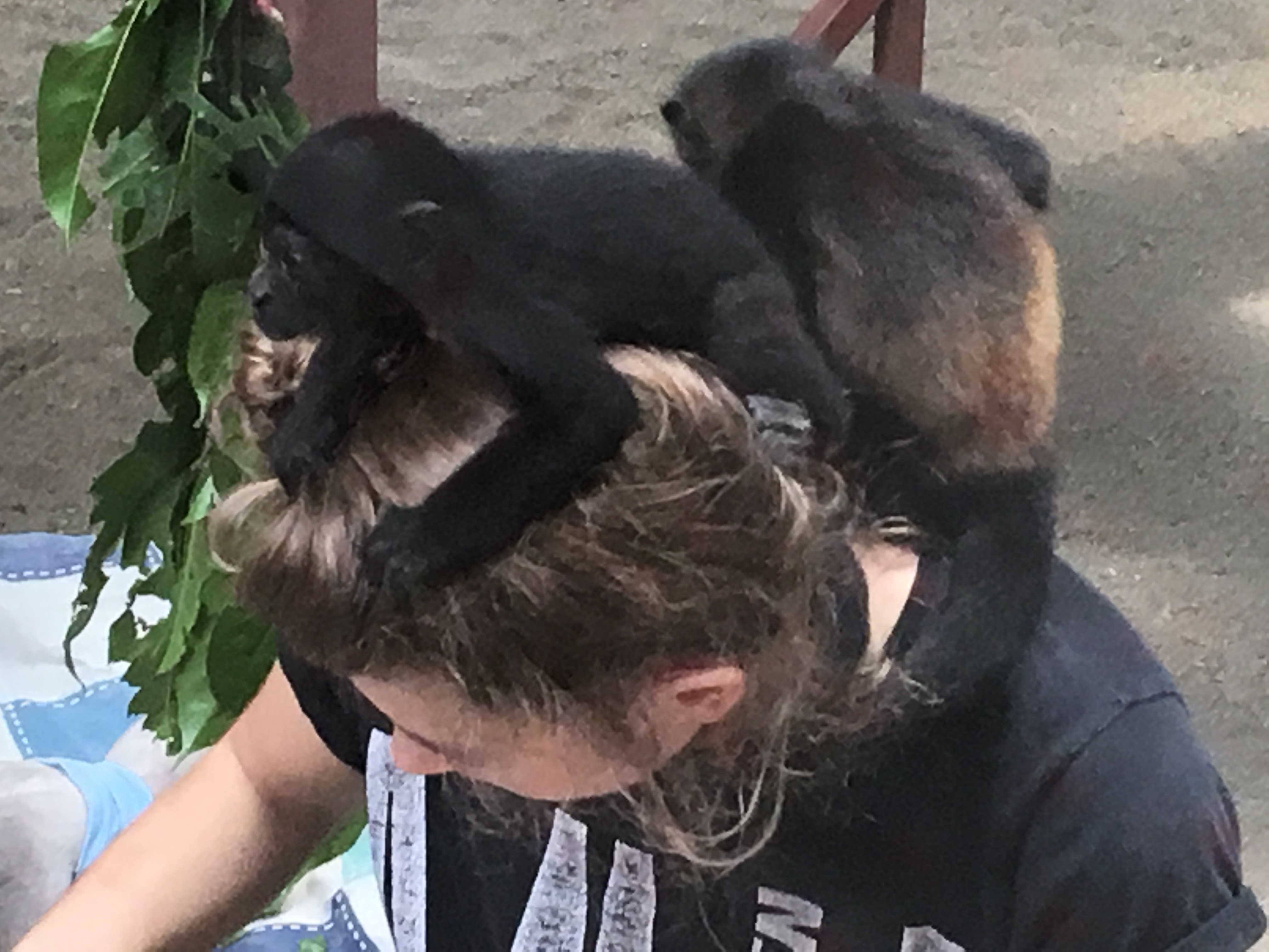 So Tierbabys berühren einen schon. Die Affenbabys haben eine ständige Betreuung, da die Menschen als Ersatzmutter fungieren. Teilweise im Käfig, aber auch im Freien erlernen sie spielerisch wichtige Überlebensstrategien. Die Haare der Betreuer werden unter einem Tuch versteckt, weil a) die Haare nicht gut für das Verdauungssystem sind und b) weil die Kleinen daran fürchterlich ziehen würden. Sie sitzen ja auch manchmal am Kopf, genauso wie in der freien Natur.