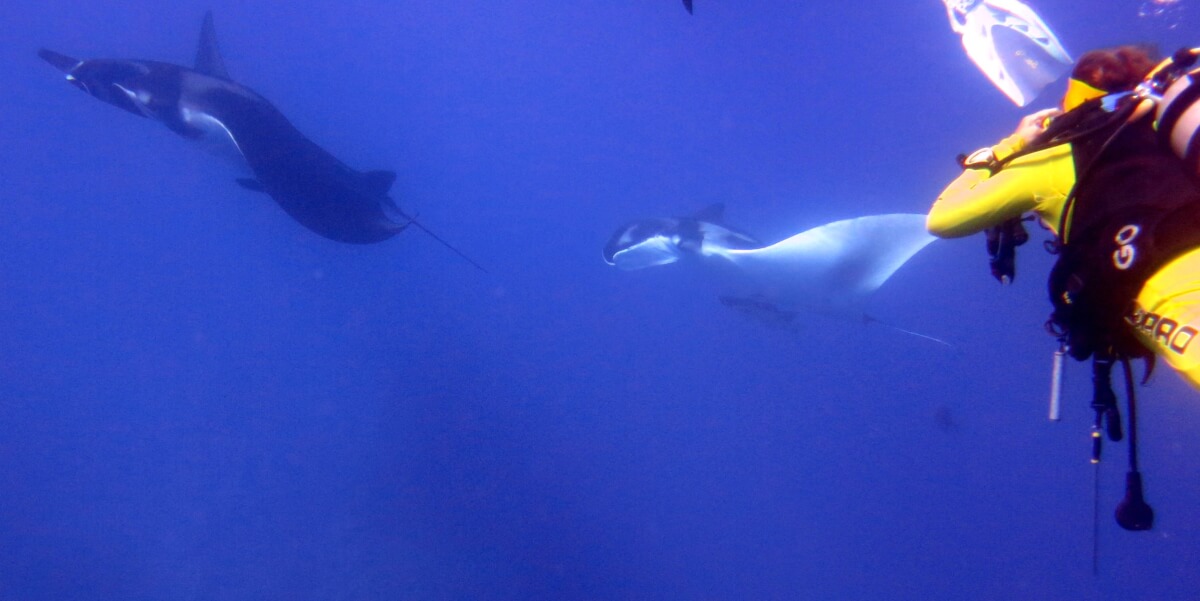Manta, Manta, Manta, Überhang voll mit Langusten, eine Delfinschule spielt mit uns, 3 Mantas tanzen vor uns, echt phänomenal!