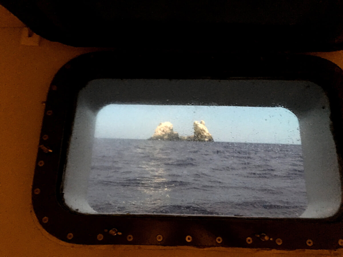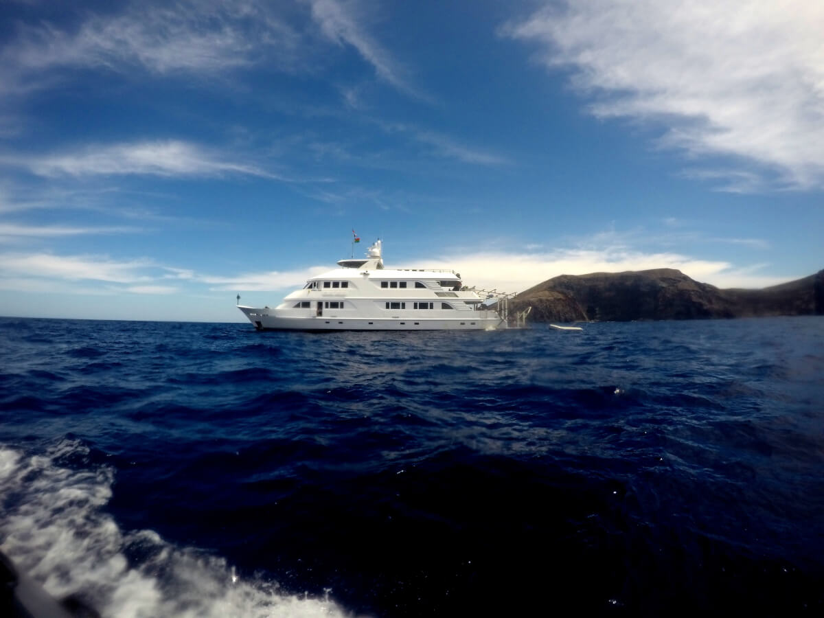 Wir fahren in der Nacht los und haben eine 32 stündige Überfahrt vor uns. Die Überfahrt ist relativ ruhig, aber Gerhards Verkühlung verschlimmert sich leider und er bekommt Fieber und zum Schnupfen gesellt sich ein schrecklicher Husten. Ich muss hier schon vorweg sagen, dass er an einem der schönsten Tauchplätze der Welt war und NICHT tauchen konnte!!!! Armer Gerhard, sein einziger Trost war, dass wir 2003 schon einmal hier waren, damals mit der Solmar V und unseren Töchtern, und wir hatten super Taucherlebnisse. Er hat mir so leid getan, aber mit einem grippalen Infekt und Bronchitis kann man beim besten Willen nicht tauchen. Nach jedem Tauchgang musste ich Bericht erstatten, was ich alles unter Wasser gesehen habe.