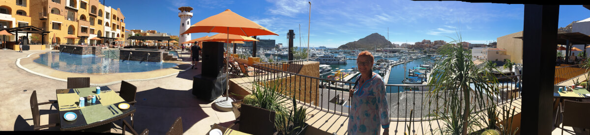 Das Resort liegt direkt am Hafen und wir haben eine wunderbare Aussicht auf diesen. Aber wir müssen eine steile Treppe zum Zimmer hinaufsteigen, und der Gepäck-Boy hat ziemlich geschnauft! Von unserem Hotel sehen wir auch die Hotelanlage, in der wir 2003 gewohnt haben. Wir bekommen einen Tipp für ein typisches mexikanisches Restaurant und am Abend gehen wir dort hin.