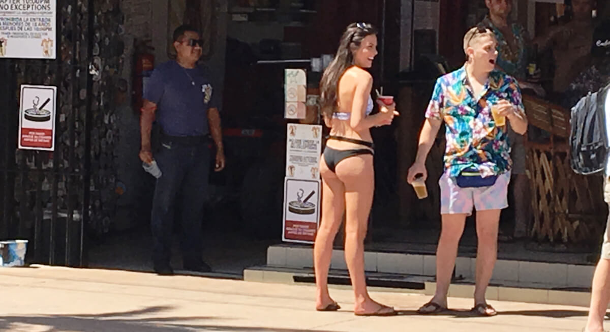 Man muss dazu sagen, dass dieser Ort beliebt ist für Spring Break (engl. für Frühlingsferien)! Das heißt, junge amerikanische Mädchen und Burschen fahren in ihren College-Semesterferien 1 – 2 Wochen vorrangig in die Karibik oder Mexico und lassen so richtig „die Sau raus“ . Alkohol wird direkt in den Mund geleert, sexy Outfit, es wird getanzt, wo auch immer es irgendwie möglich ist. Aber man muss sagen, sie sind auch diszipliniert: Keine Zerstörungswut oder Raufereien, wenn genug ist, ist es genug und man geht dann brav nach Hause, oder akzeptiert es, dass man keinen Alkohol mehr bekommt. Am Strand werden verschieden Spiele in den diversen Lokalen gemacht. Wir kommen gerade zurecht zu einer Reise nach Jerusalem. Dazu waren wirklich sexy bis sehr sexy Mädchen auf der Bühne, die um die Sesseln erotisch herum tanzen mussten. Ein Sessel ist immer zu wenig, und das Girl, das keinen Sessel erwischt, scheidet aus! Natürlich werden auch Wetten abgeschlossen, welches Mädchen gewinnen wird – Mindesteinsatz 5$. Ein Gegröle und eine Stimmung, super!
