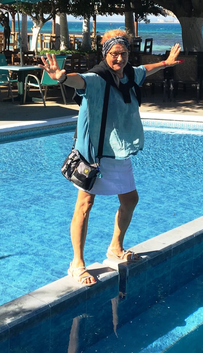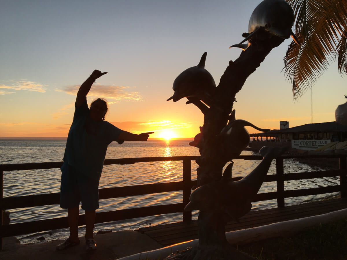 Wir fahren mit dem Mietauto, mit Hilfe von Google Maps und Karten kommen wir ziemlich zielgerade im Hotel La Concha Beach Club in Carretera a Pichilingue in der Nähe von La Paz an. Wir haben ein Double King Sea View Room mit kleinem Balkon. Das Hotel hatte natürlich einen Swimming-Pool und eine Pool Bar, das wir nach dem Tauchen gerne genutzt haben. In der Anlage waren verschiedenste Metall-Statuen, von Meerjungfrauen bis Delfin Skulpturen. Das ladet natürlich zum Fotoshooting ein. ;-)