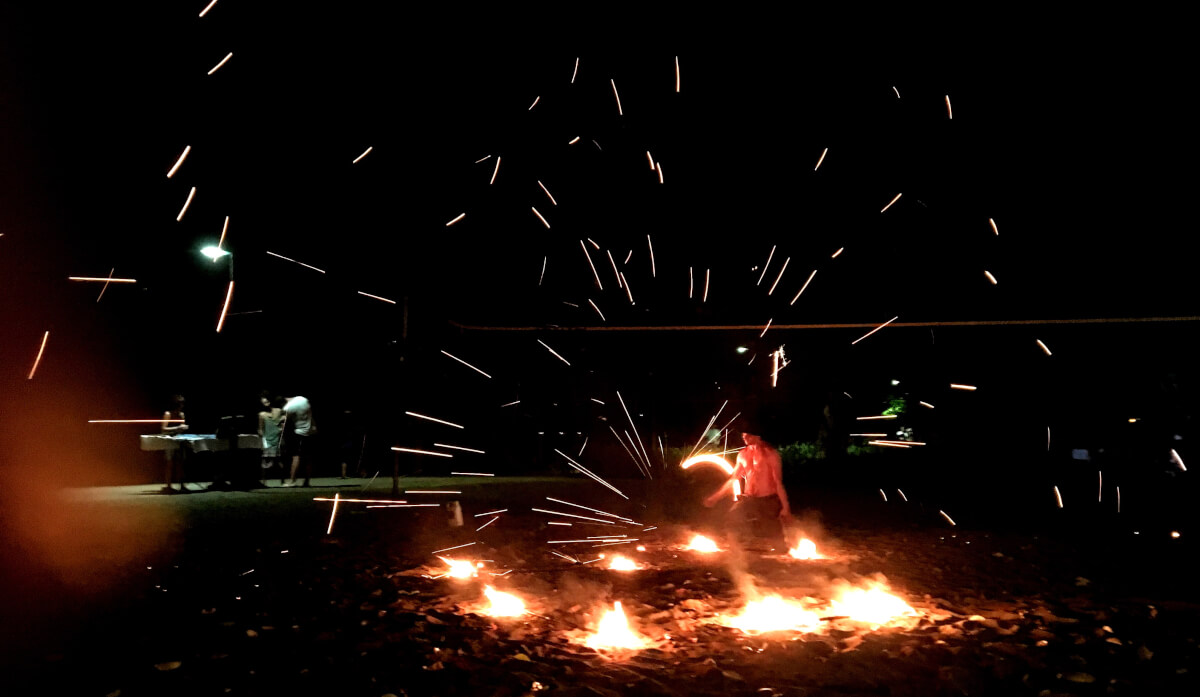 Wir sind auch zusammen in ein Restaurant am Strand gegangen, wo ein Feuerschlucker seine Künste herzeigte. Jungs fertigen aus Palmenblätter Blumen oder Tiere und verlangen 1$ dafür. Claudia hat für sich und mich eine Blume gekauft. Sie hat ein so großes Herz, aber die Blume verziert heute noch meinen Strohhut! Danke liebe Claudia.
