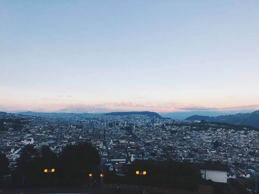 Die Fahrt in die Stadt ist beeindruckend. Neben uns ganz tiefe Täler, über Berge und runter von den Bergen. Rein in das dicht besiedelte Quito. 70 km lang und nur 14 km breit! Eine Wahnsinns-Stadt, die man auf den ersten Blick gar nicht erfassen kann.